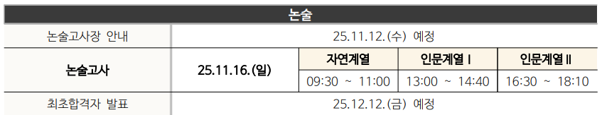 올해 논술고사는 11월 16일 일요일에 치르는데 항상 보던 것과 동일한 일정이에요.
