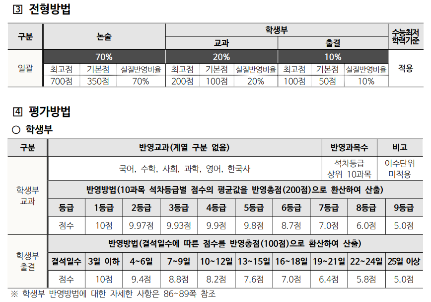 내신은 1-6등급까지 큰 차이 없습니다. 그리고 실제로 6등급대까지는 무난하게 합격해요.
