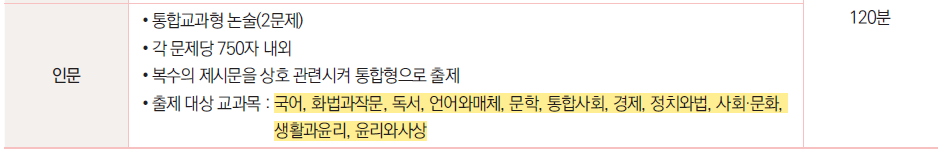 그리고 꼭 제시문 안에 밑줄 그어서 뭔가를 묻는 경우가 많아요.그만큼 섬세하게 분석하고 풀어야 한다는 거!!!그러니..꼼꼼한 친구들에게 추천드려봅니다.총 750자를 2문항 쓰는데, 120분이라서 시간에 쫓기는 경우가 많지는 않아요.적당히 준비를 해 둔 학생들이라면요!차분하게 연습해보세요. 해볼 만합니다.