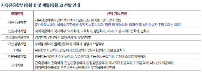 입학 후 아무 전공이나 선택할 수 있으니까 지원을 고려해보아도 좋습니다.