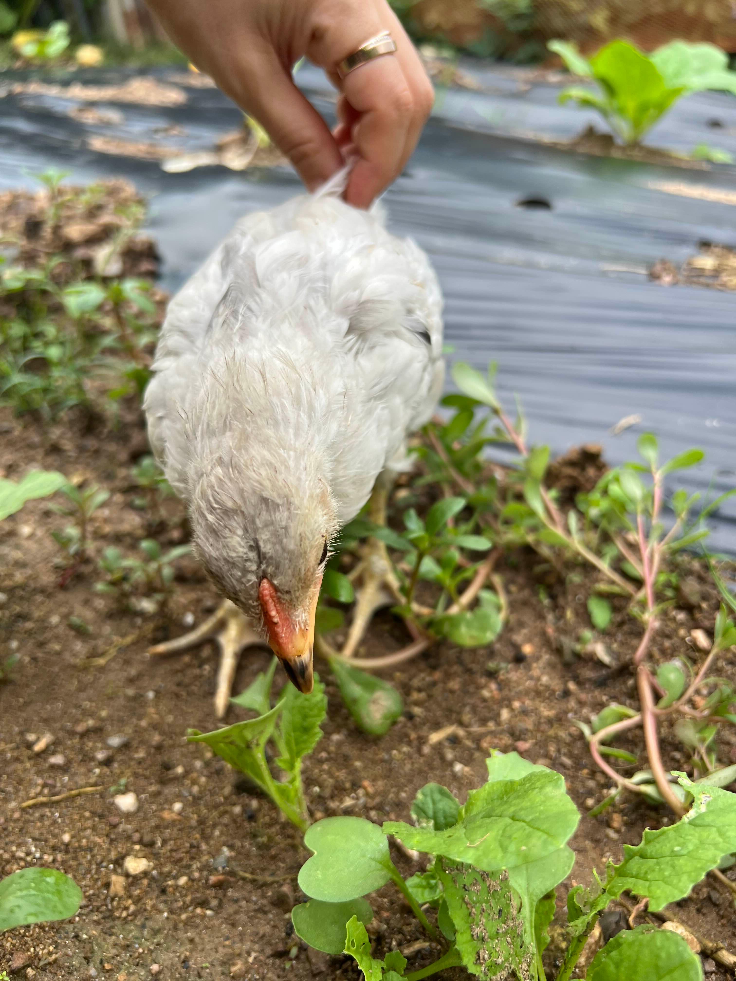 손바닥 펼치면 다가와서 반지 쪼고 다리 사이에 손바닥을 끼워주면 가만히 있어서 밭으로 데리고 나왔다.