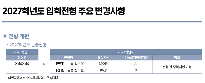 2027학년도에는 "중앙대"에도 수능 최저 없는 논술 전형이 생겼습니다. 짝짝짝짝짝!!