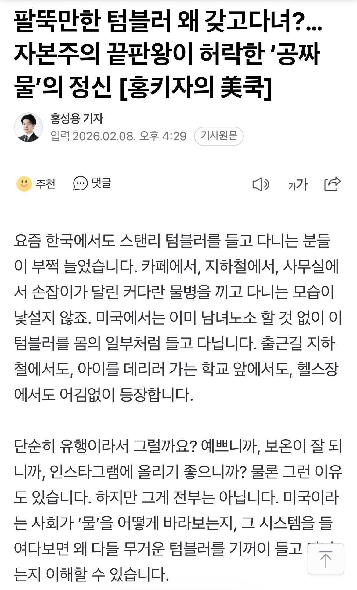 팔뚝만한 텀블러 왜 갖고다녀?…자본주의 끝판왕이 허락한 ‘공짜 물’의 정신 [홍키자의 美쿡]